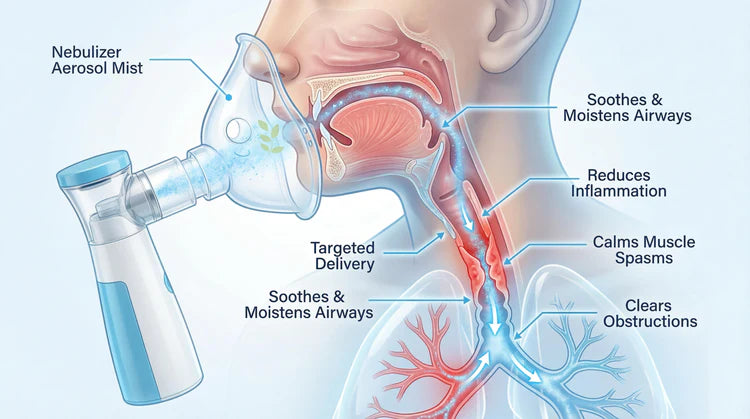 Nyocu™ transforms liquid medication into therapeutic mist that soothes irritated airways and delivers relief exactly where your child needs it most.